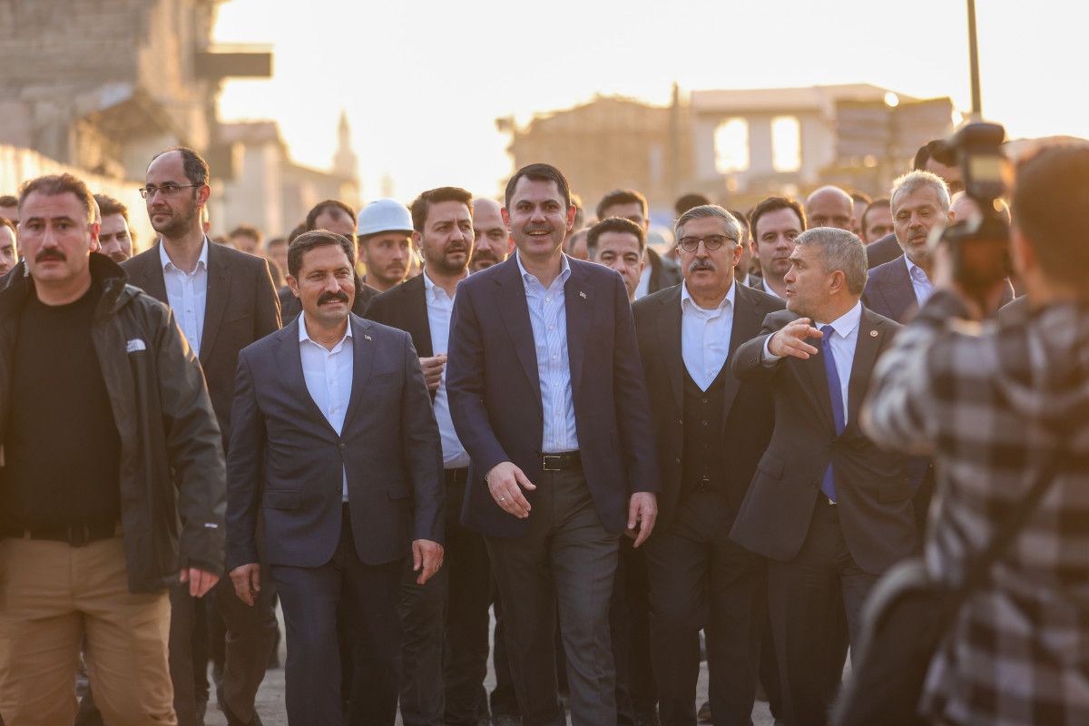 Cumhuriyet Caddesi’nde incelemelerde bulunan Bakan Kurum, burada basın açıklaması yaptıktan sonra kentte son aşamaya gelen inşa çalışmalarını incelemek için şantiyeleri dolaştı.