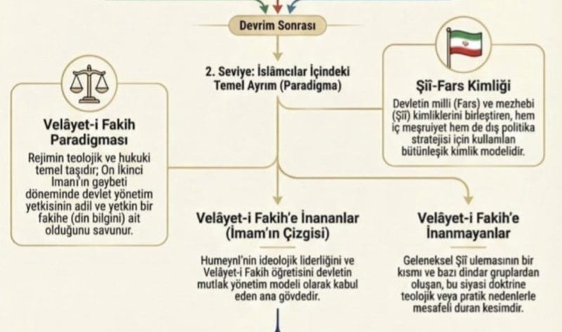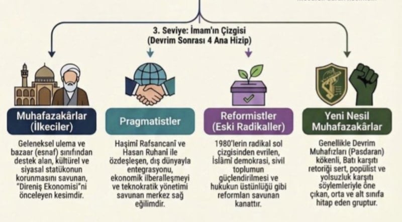 Devrim Sonrası Siyasi Yapı 1979 devriminin ardından İran siyasetinde ideolojik ve kurumsal düzeyde yeni ayrımlar ortaya çıktı.