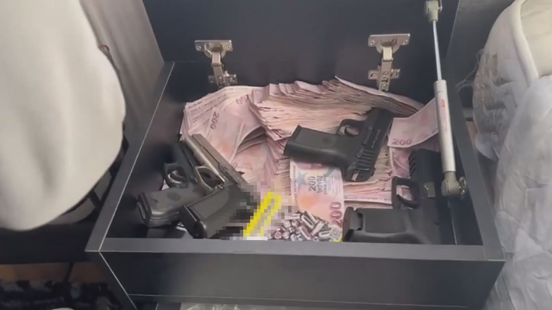 Operasyonda gözaltına alınan şüphelinin evinde yapılan aramalarda, çekmece içerisinde manyetik kart ile açılan gizli bir bölme olduğu tespit edildi. Gizli bölmede yapılan incelemelerde; 3 ruhsatsız tabanca, 1 kuru sıkı silah, farklı boyutlarda toplam 89 fişek ve 245 bin 100 lira ele geçirildi.