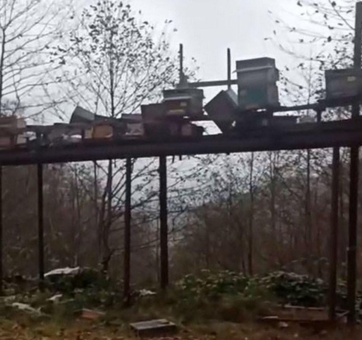 Hemşin ilçesine bağlı Akyamaç Köyü’nde arıcılar, kovanlarını ayılardan korumak amacıyla yerden yükseltilmiş ve demir profillerle güçlendirilmiş tezgâhlar kurdu. Ancak gece saatlerinde bölgeye gelen ayılar, bu önlemleri de aşarak tezgâhı parçaladı.