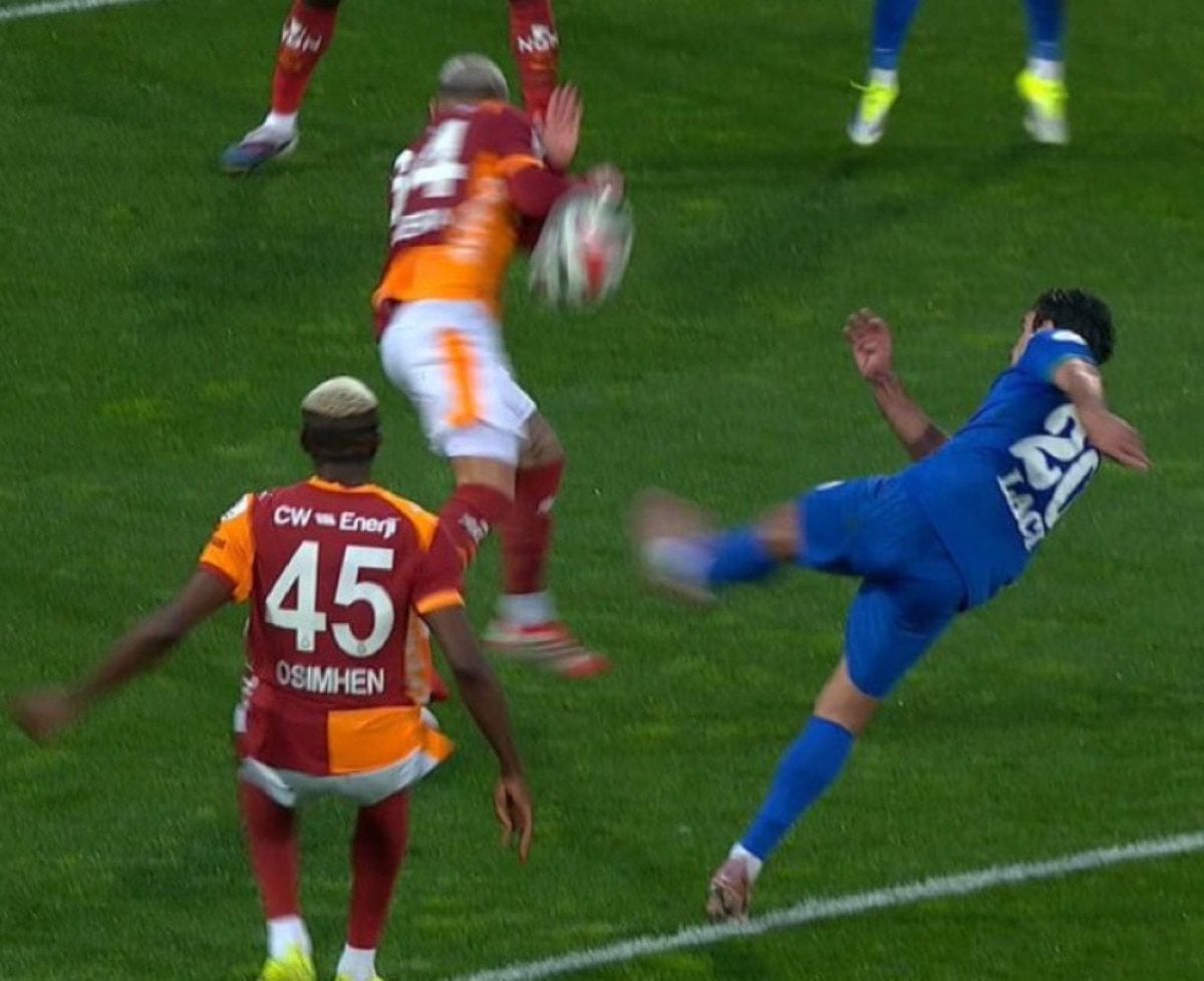 Karşılaşmanın 43. dakikasında Laçi’nin vuruşunda top Lucas Torreira’dan sekti. Rizesporlu oyuncular, bu pozisyond elle oynama ve penaltı bekledi.