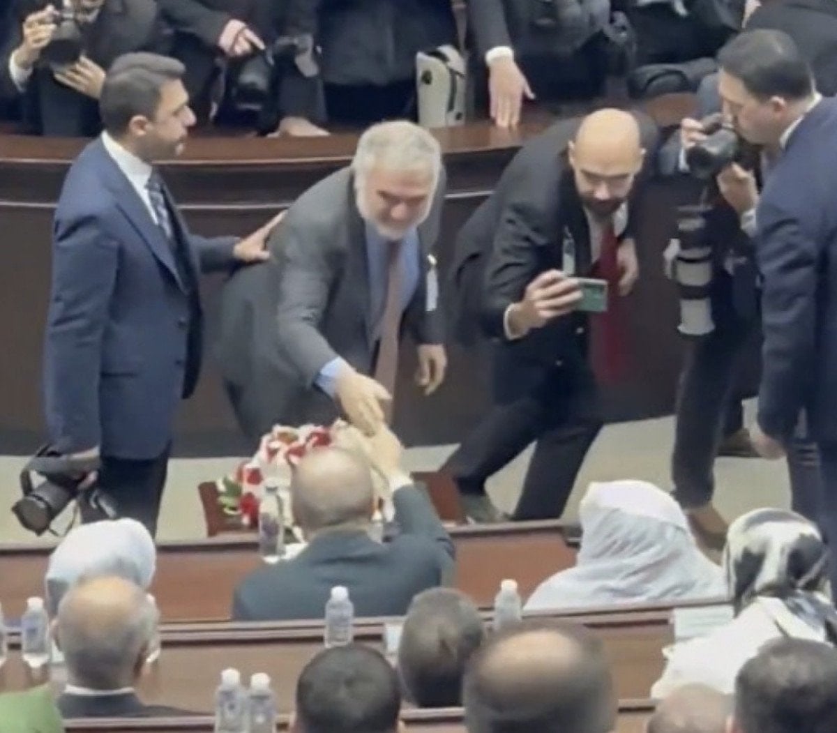 Muhalif kimliği ile bilinen Ruşen Çakır’ın Cumhurbaşkanı Erdoğan’la tokalaştığı anlar, grup toplantısının en dikkati çeken karelerinden oldu.