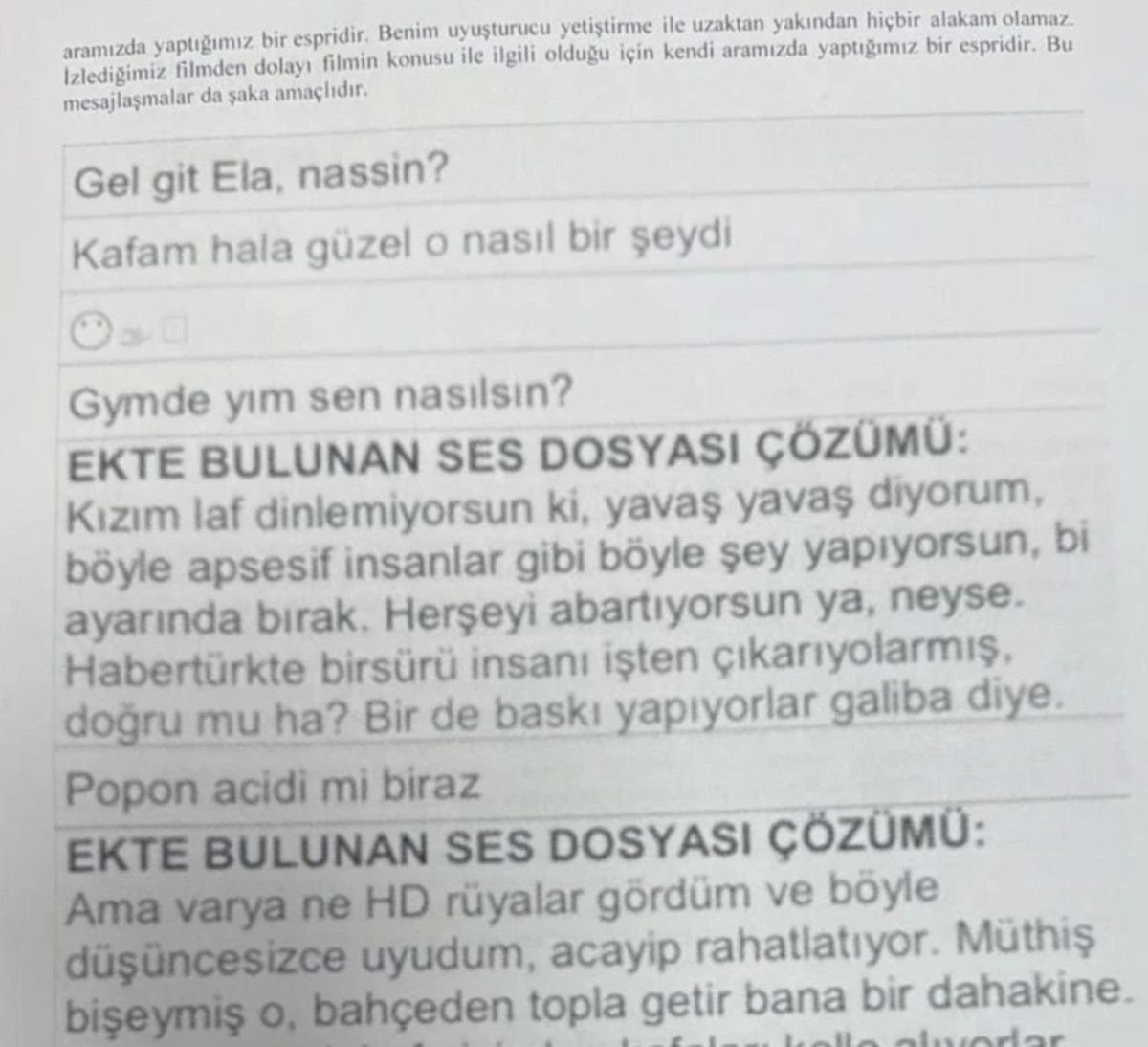 İfadenin devamında Ela Rümeysa Cebeci ile arasında “İyi misin?, Çok içtik” şeklindeki mesajlaşmalar soruldu.