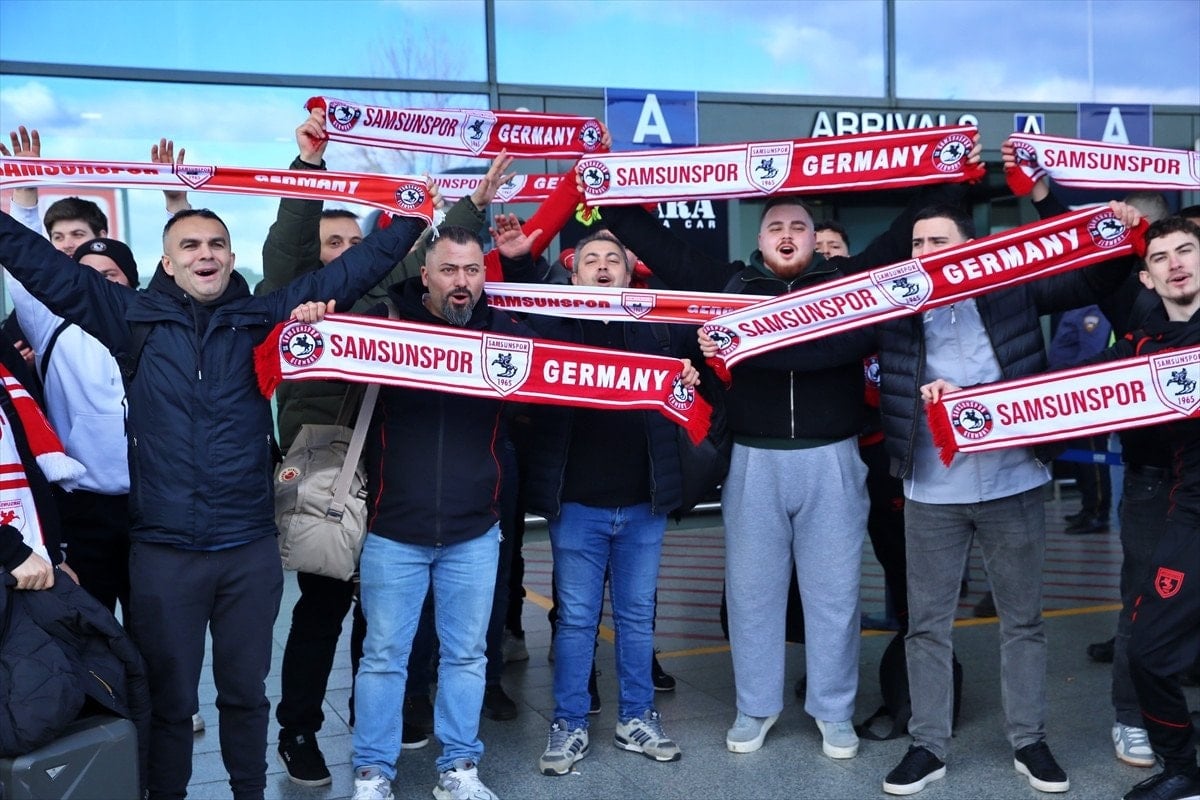 Samsunspor, UEFA Konferans Ligi son 16 play-off turu ilk maçında Shkendija ile oynayacağı karşılaşma için gittiği Kuzey Makedonya’da taraftarlar tarafından karşılandı.