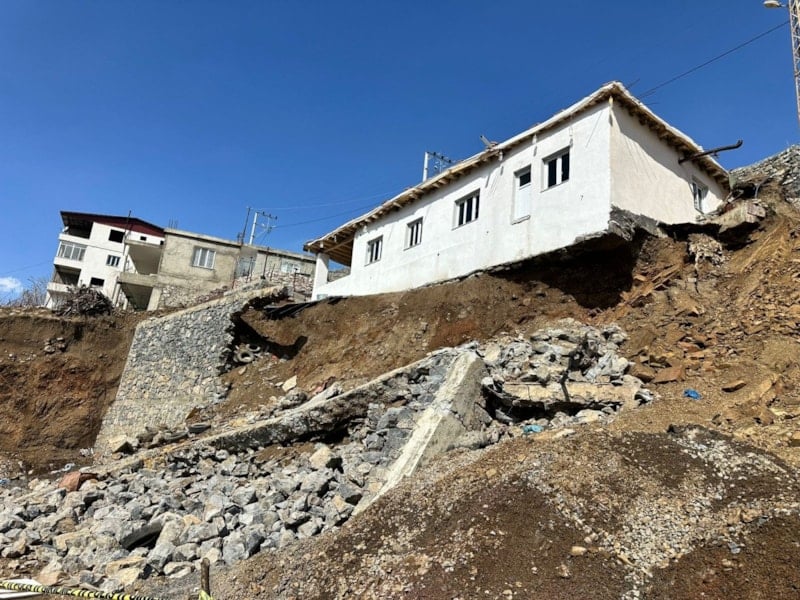 Şırnak’ta yağış nedeniyle istinat duvarı çökünce evin temeli ortaya çıktı