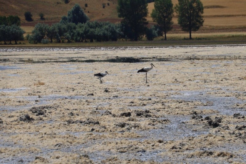 Göçmen kuşların sıklıkla görüldüğü gölden geriye tuz tabakası kalmıştı.