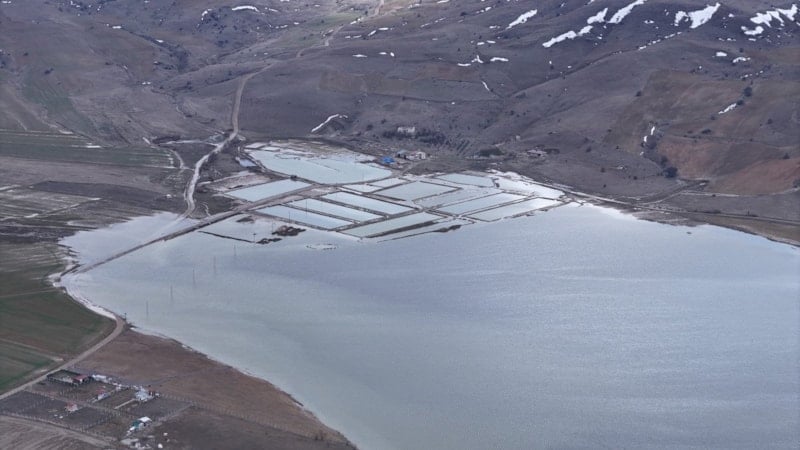 Göçmen kuşların sıklıkla görüldüğü gölden geriye tuz tabakası kalmıştı.