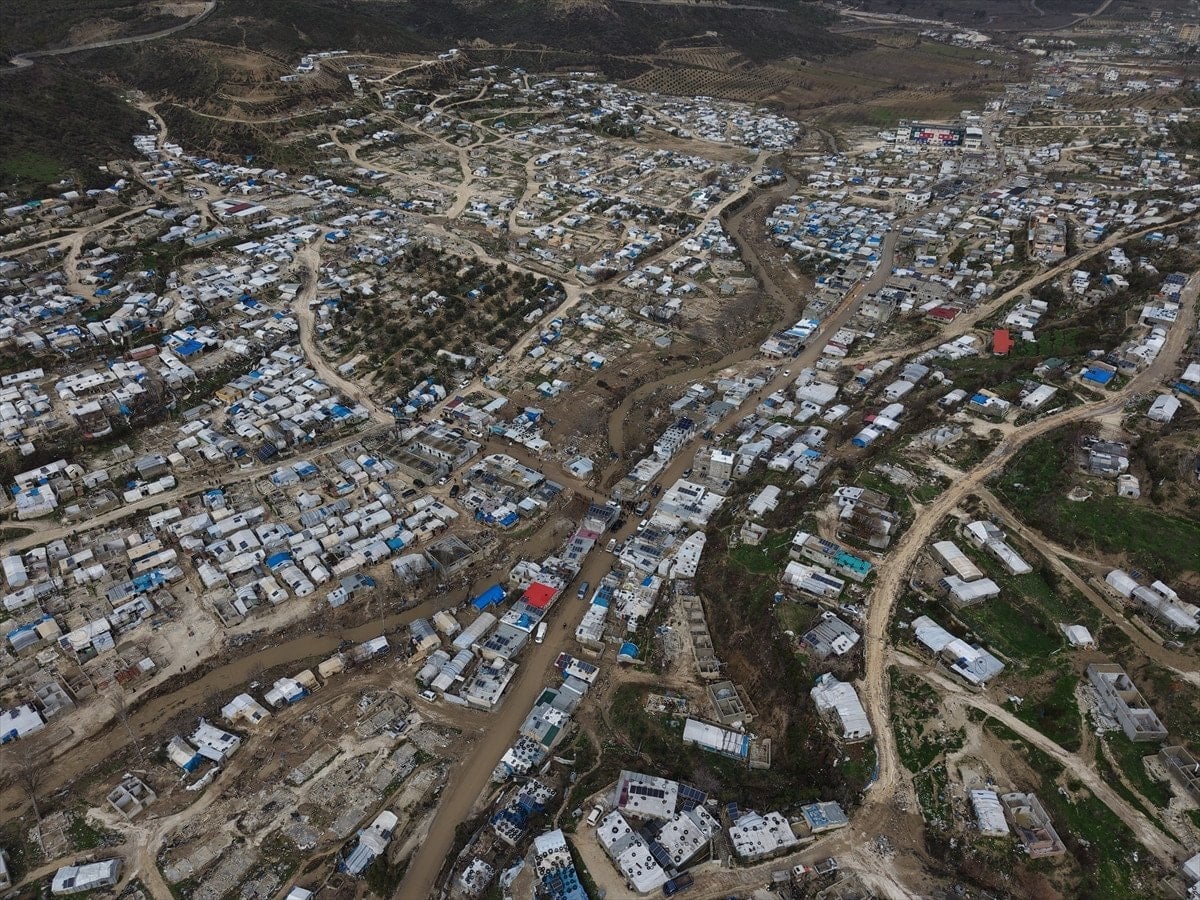 İdlib’in doğu kırsalında ani sağanakların ardından, dere kenarlarına kurulan derme çatma çadırların bulunduğu alanlar sular altında kaldı.