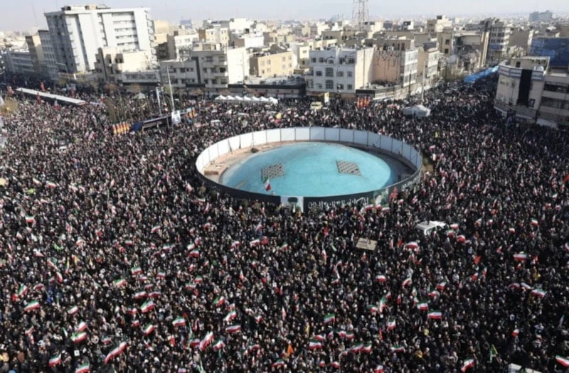Medyaya yansıyan görüntülerde, Tahran’ın merkez meydanını tamamen dolduran kalabalık İran halkı yer aldı.