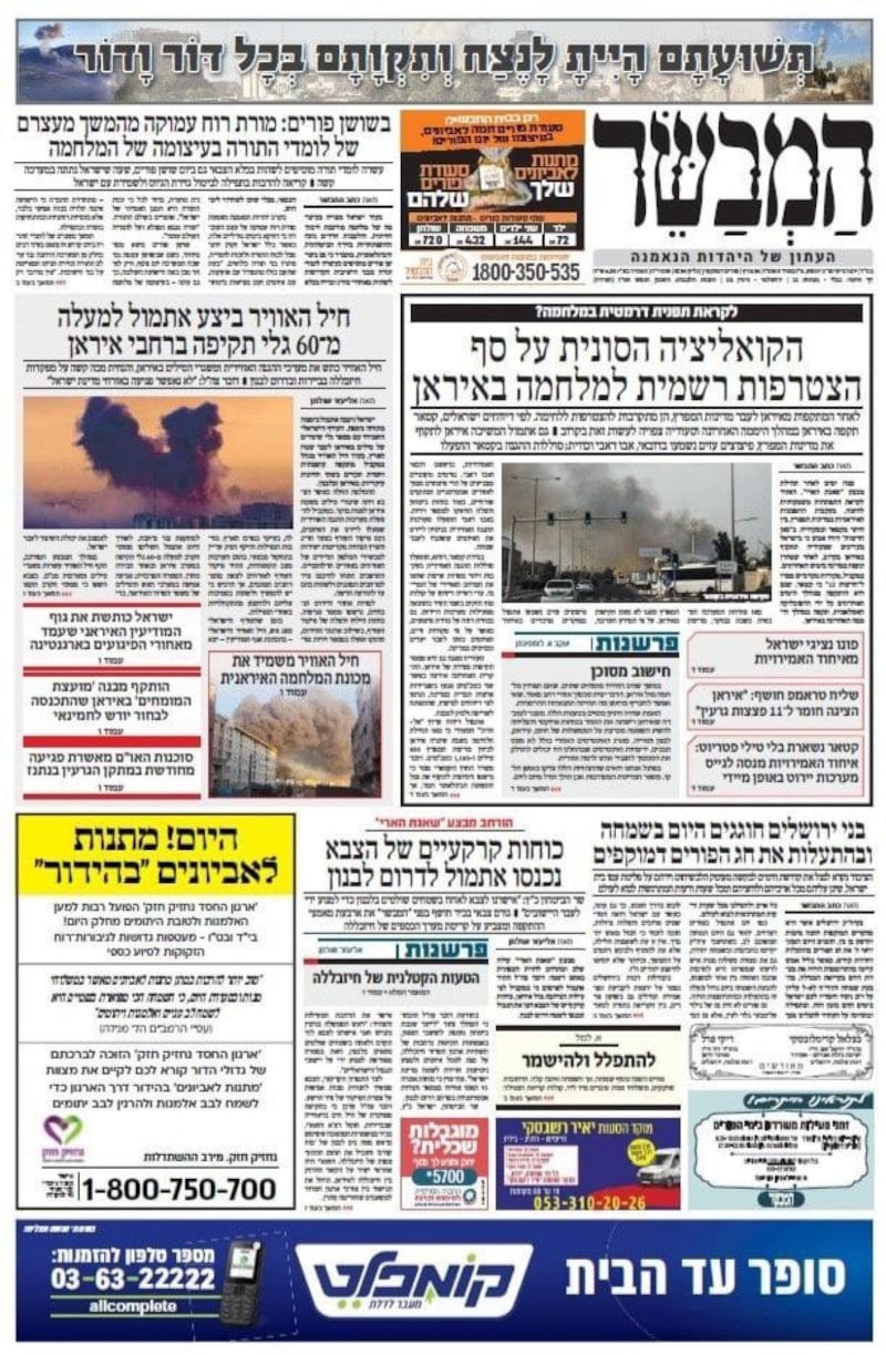 Diğer gazete ise, Hizbullah tam kapasite dahil oldu, İran ve Lübnan’dan İsrail şehirlerine eş zamanlı saldırı diyorlar. Devrim Muhafızları’nın vurulduğunu duyurdu gazete, Devrim Muhafızları güvenlik birimlerinin komuta merkezi vuruldu.