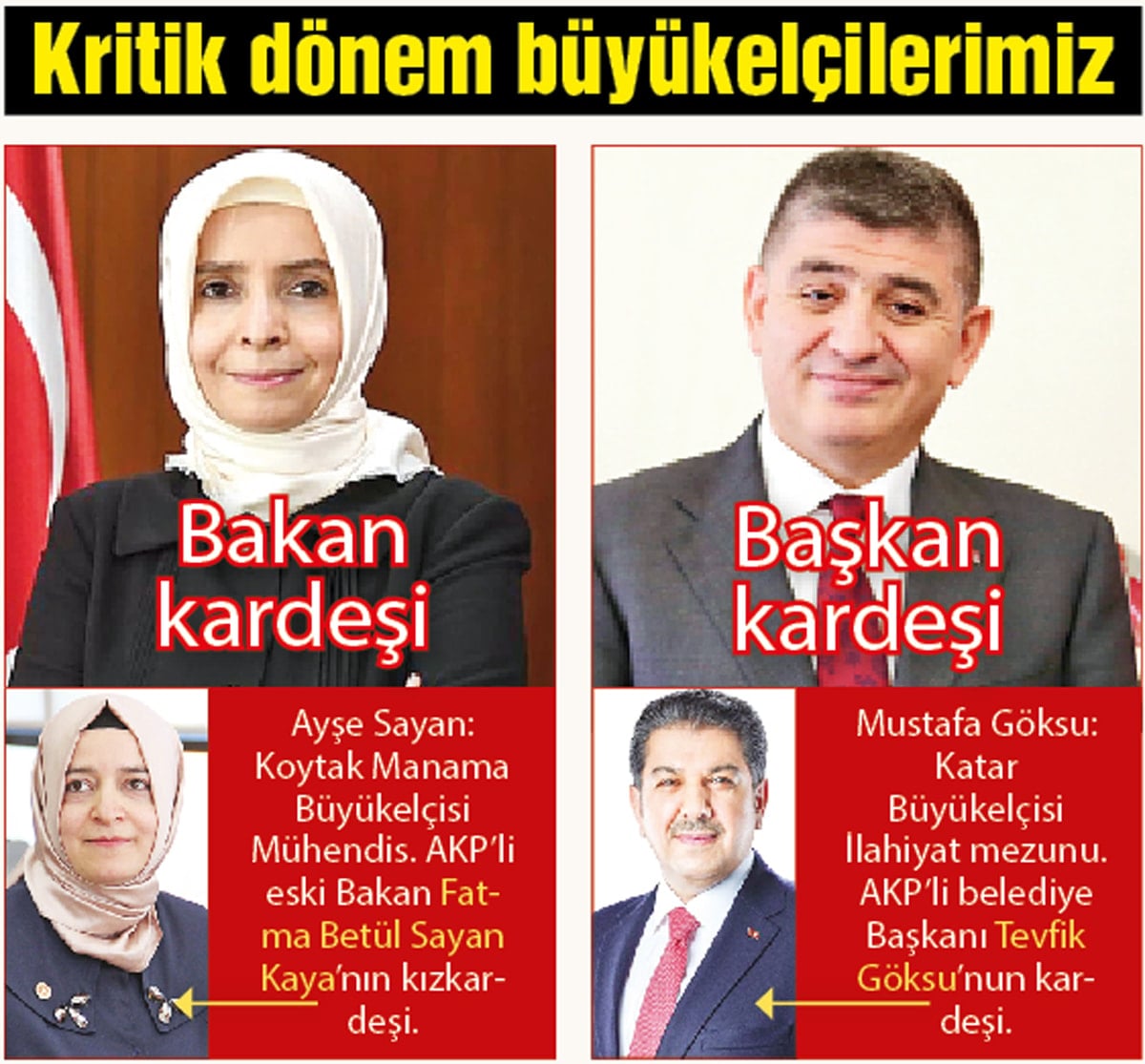 Ayşe Sayan KOYTAK (Manama): Mühendislik Fakültesi mezunu. Başbakan Dış Politika Danışmanı. Aile ve Sosyal Politikalar Bakanlığı Müsteşar Yardımcısı. Kuveyt eski Türkiye Büyükelçisi.. İngilizce, Almanca ve Arapça biliyor. AKP’li eski Bakan Fatma Betül Sayan Kaya ile eski Bakan Yardımcısı Ömer Fatih Sayan’ın kız kardeşi.