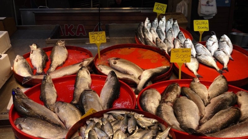 Trabzon Balıkçılar Hali’nde hamsi ve istavritin kilosu 100, alabalık 300, çipura 500, levrek ve çinekop 600, somon ise 300-400 lira arasında satışa sunuluyor.