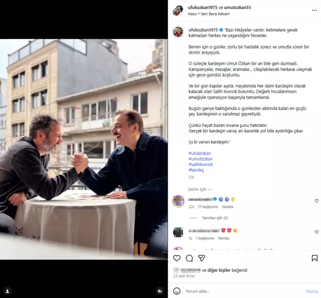 “Kardeş” kelimesini kullanırken kendisine karaciğerini veren Salih Kıvırcık’ı da es geçmeyen Özkan paylaşımında şu ifadeleri kullandı: