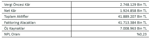Vakıf Faktoring A.Ş’nin 31 Aralık 2025 tarihli bilançosunun öne çıkan finansal göstergeleri