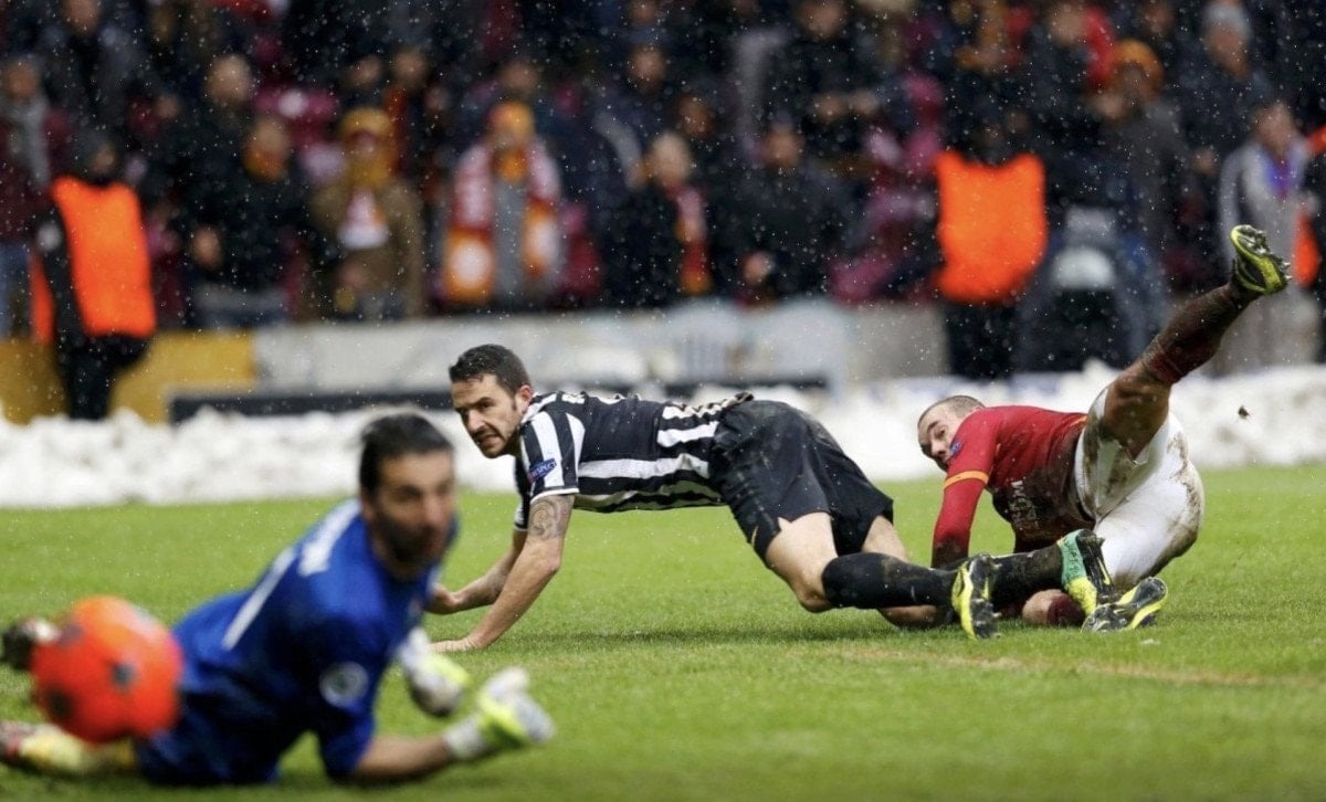 İstanbul’daki yoğun kar yağışının damga vurduğu maçta sahneye çıkan Wesley Sneijder çıkmıştı.