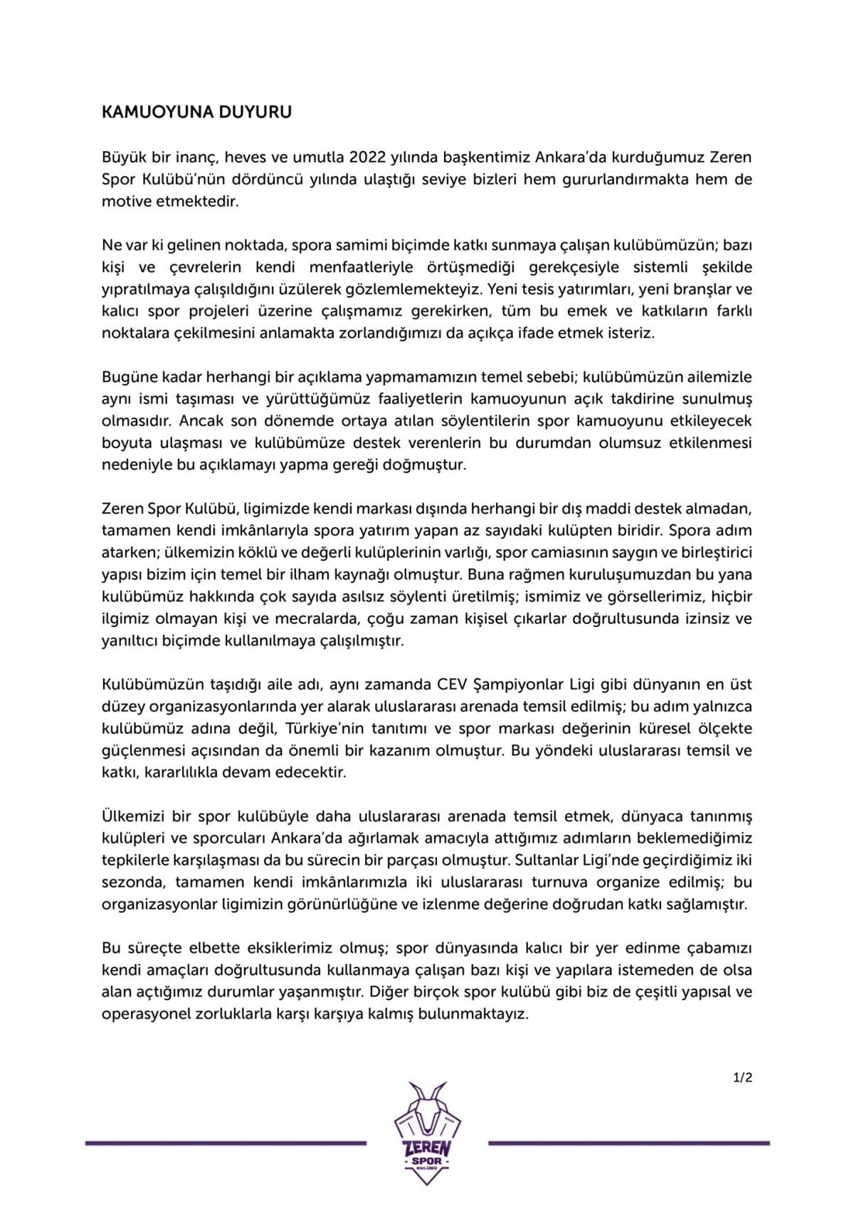 Sultanlar Ligi ekiplerinden Ankara Zeren Spor Voleybol Kulübü, “maddi zorluk yaşandığı” iddilarına ilişkin açıklama yaptı.